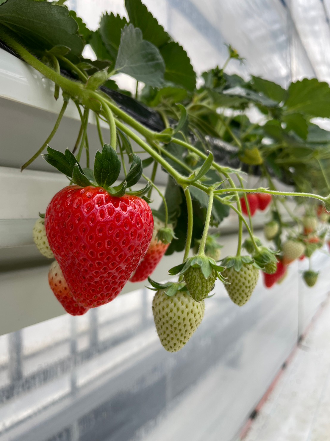 収穫するコースのレーンは50mぐらい?が30本ぐらいあるので、とにかくたくさんのイチゴがなっています!